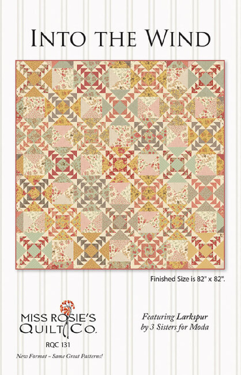 Some years ago, I bought a beautiful fabric collection called Larkspur by 3 Sisters (for Moda). I loved the fabric, but wasn’t sure what to do with all those lovely vintagey prints and colors. Then Miss Rosie’s Quilt Company provided me with the perfect pattern, Into the Wind. Sometimes you just have to make a quilt exactly as shown.