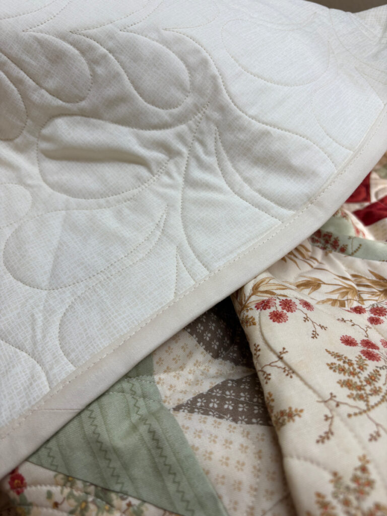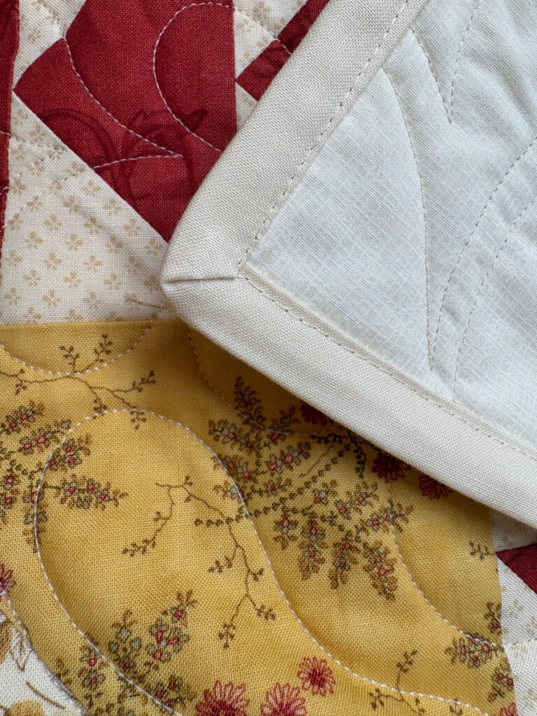 And kudos to you for tackling the machine binding. It is done perfectly! I recently had a quilt quilted and decided to have them also do the binding by machine (i can’t do hand bidning anymore) Yikes! It was such a disappointment 😞 looks great from the top but the underside is a mess. It’s usable of course, but I was sad how it turned out.