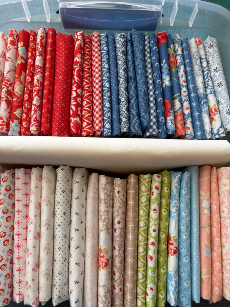 These pretty fabrics are “Rosie”, the latest Fig Tree collection by Joanna Figueroa for Moda. I’ve got them all starched and pressed and ready for a new sew-along, which starts in February. The sew-along is called “Celebrating America”, in honor of America’s 250th birthday this summer. The sew-along is hosted by Lissa Alexander, using her book with Susan Ache, “Celebrate With Quilts”.