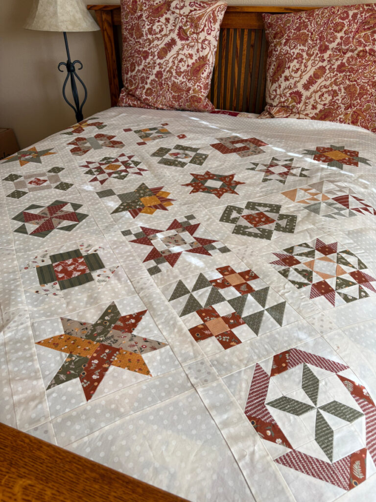 This is the last Sewcialites quilt I made, and I was pleased with how it turned out. However, I substituted some blocks and used a completely different setting…
