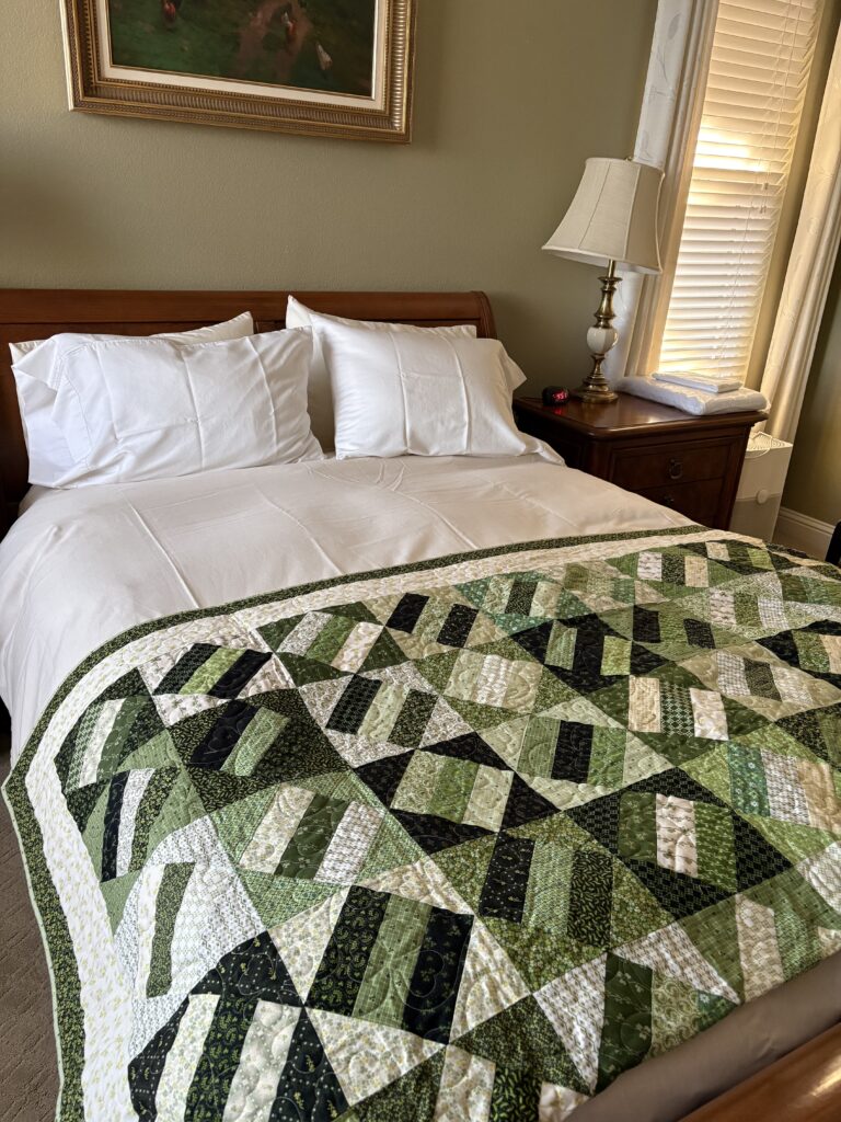 Donna, that quilt is gorgeous! It does have the same “green” vibe that my quilt has! I’m pretty sure I made that same mystery quilt during the summer of Covid! Mine was in pastels and I gave it to my son in law and his wife. Your quilt came out so great.