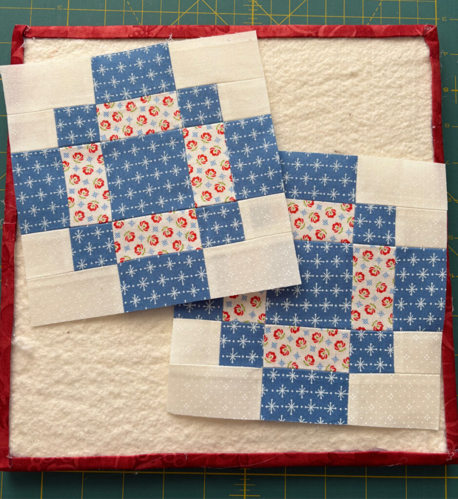 What cute 3″ blocks you’ve made!! I look forward to seeing where they fit in the quilt layout.