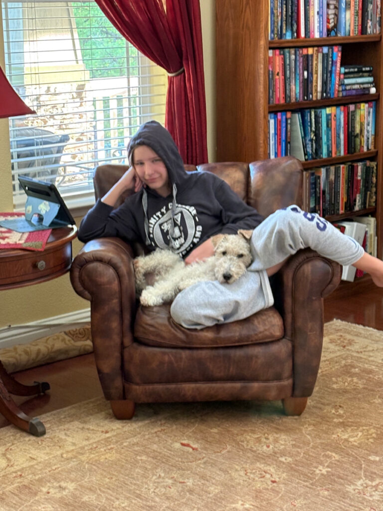 Eva spent the night over the past weekend, and as you can see, Archie is never far from her side. In fact, he is usually physically upon her in one way or another every minute. This picture was taken on Sunday morning when she wasn’t quite awake yet and just wanted a few minutes to collect herself. Nope, not allowed.
