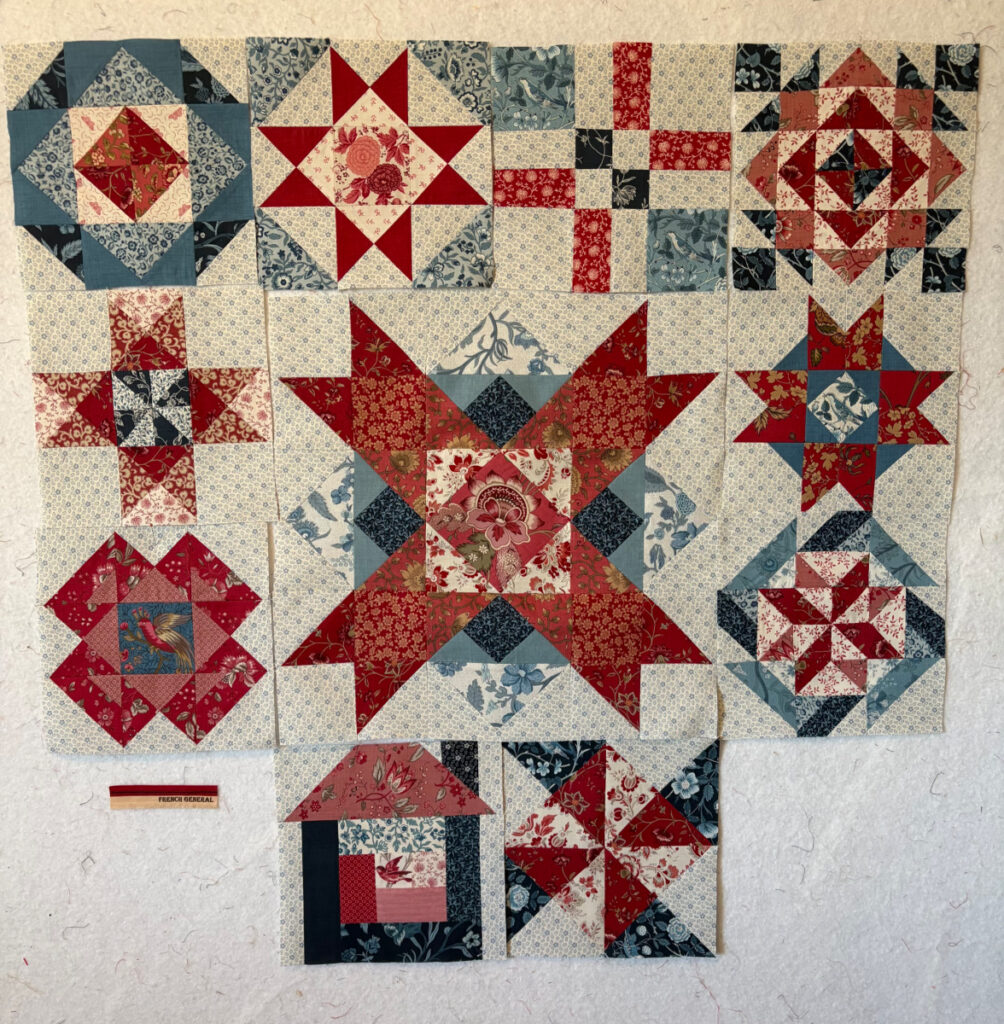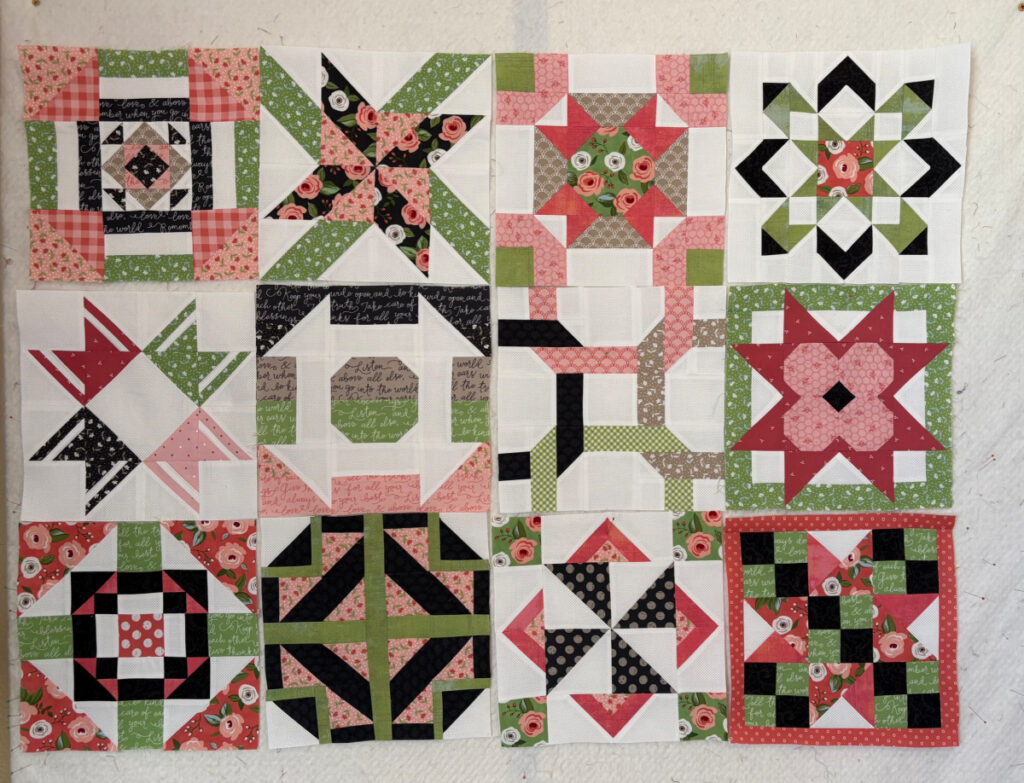 I got a bit of sewing done over the weekend. My goal was to get caught up on a couple of BOMs I am doing. The blocks above are for the Riley Blake Challenge 2026, a reliably fun sew-along. This one is a block of the week project, with block designs being provided for free by Riley Blake designers.