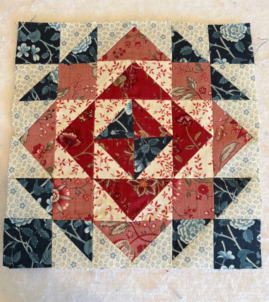 Next, I did another Sewcialites block. The block of the week wasn’t for me, so I substituted something that fits better with my other blocks.