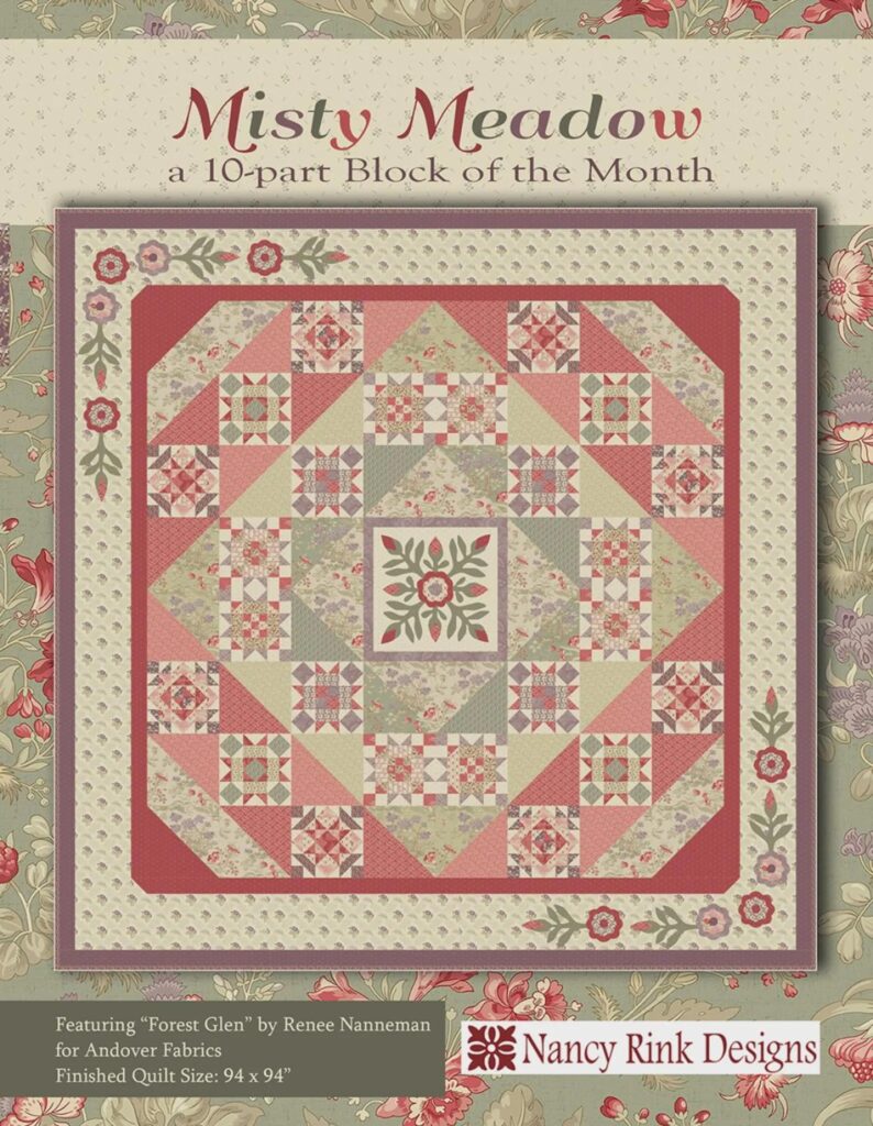This is a block from a Nancy Rink pattern called Misty Meadow. It was the right size and I thought the French General fabrics would work for the blended patchwork effect I am going for.