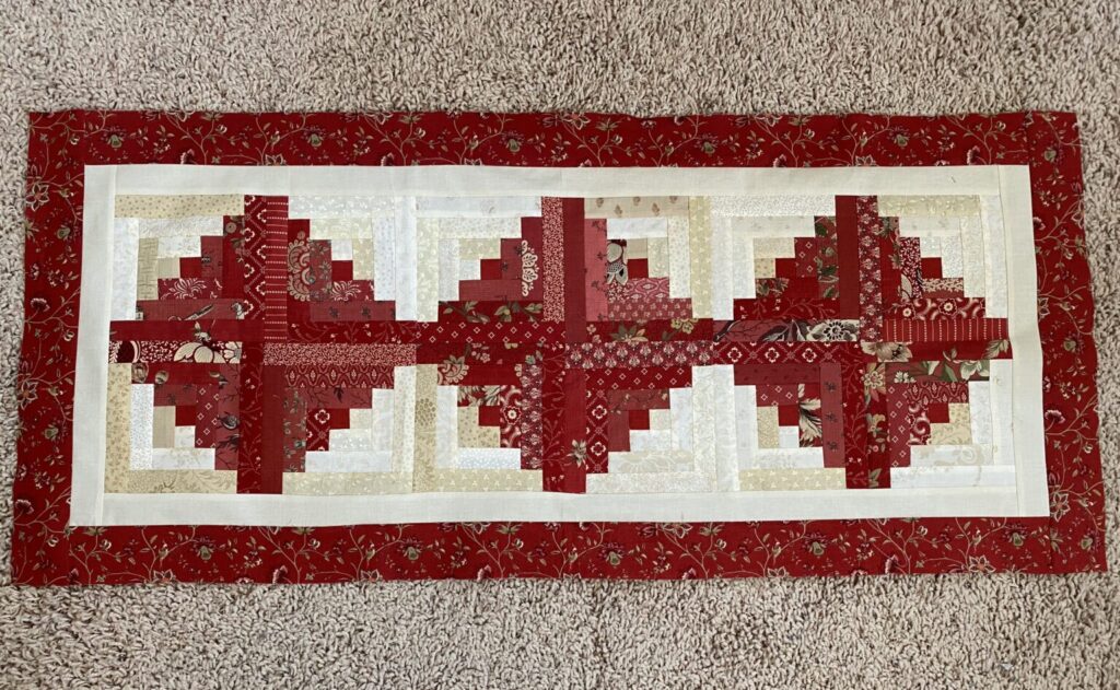 I have made more table runners from French General fabric than I can show here, but here is one last image to leave with you. These simple log cabin blocks were made with leftovers and worked out so well for a little table runner. If you haven’t discovered French General fabric, I hope this introduction has encouraged you to give their collections a try!
