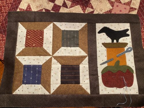 I have started another one of those By Thy Hands projects by Buttermilk Basin. The pieced block is Spools, as you can see. I used striped fabric in the hope that it will help in the illusion of thread being on the spools. The wool applique is of a tomato pincushion and a spool of […]