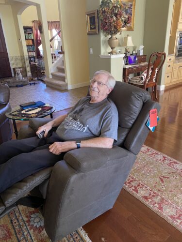 Here is my husband trying to muster a brave smile through his pain. He is sitting in the new gazillion dollar chair I bought so he could recline into a position where his discs weren't screaming out in agony. You see Archie there in the background in his kennel? He thinks the power recliner is […]