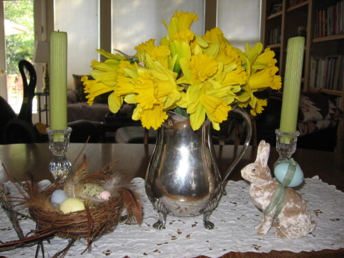 I had to share my daffodil bouquet with you all. It was my Springtime treat for myself. The weather has been so lovely this week, that I decided to bring out even more Easter decorations, including my Suicide Bomber Bunny. That is what Dad called him when he saw him. Honestly. My decorations don't get […]
