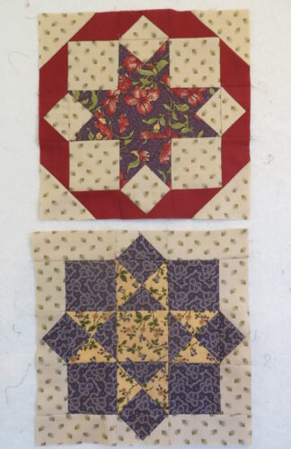 On the left we have a 6 1/2" block. This was Block #1 in the 2017 Triangle Gatherings Sew Along. I like it a lot. The block on the right has a 4 1/2" version of Block #1, surrounded by star points. That block is 8 1/2" square. I am crazy in love with […]