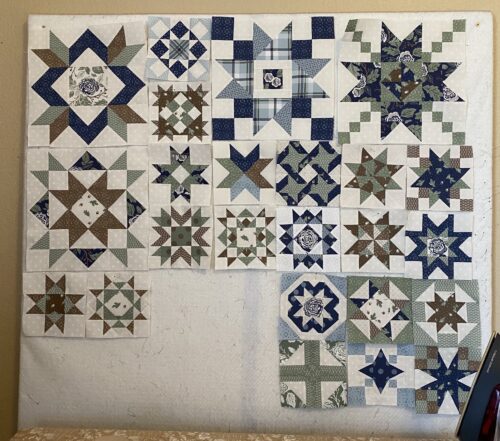 I think it is time for a Moda Blockheads 5 catch-up. For the setting I am going to do, I need 5 twelve-inch blocks, 16 six-inch blocks, and 8 six-inch blocks with a darker outside edge. Right now, I have 4 twelve-inch blocks, 14 six-inch blocks, and 6 six-inch blocks with a darker outside edge, […]