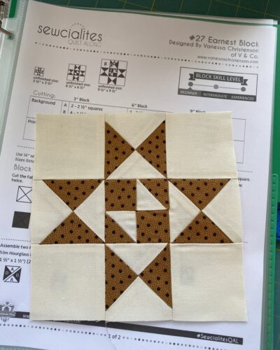 Here is last Friday's Sewcialites block "Earnest" designed by Vanessa Christensen of V & Co. I wasn't loving the tone of my gold blocks, so I had a rummage through my stash and pulled out a few more pieces that leaned more gold than tan. So you see my pull from stash below. All starched […]