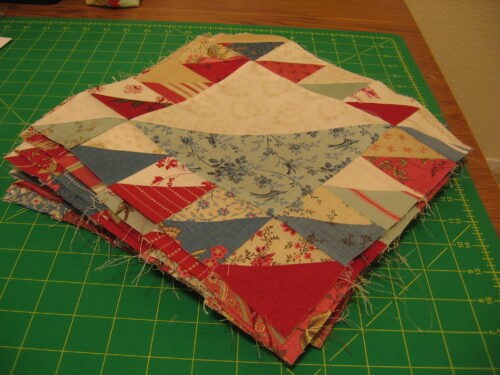 I know, you think you have seen this picture before. But you haven't. This is a picture of 29 completed Belle Meade blocks! Woo hoo! My plan is to finish the last 12 tomorrow and start laying out the blocks. Thelma is ahead of me, but is patiently waiting for me to catch up. I […]