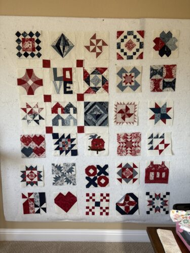 I finished all my Hourglass blocks! Now to sew them together and add a couple of borders. I am a person who really enjoys piecing individual blocks, but when it comes to sewing the blocks into rows, adding borders etc, my interest is not so keen. Most of the time I can manage to get […]
