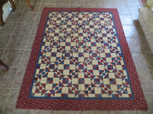 This girly quilt is going to…one of the young women in the family. Big surprise. It is called Hugs and Kisses (a Fig Tree pattern) and is made with various reds from Fig Tree collections. I like the border for this one, with the grey print making a little saw tooth design. And this is […]