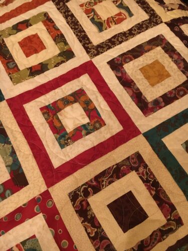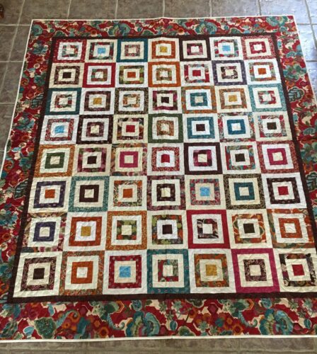 My quilter and I called this quilt "Modern", for lack of a better name. It is an Evelyn Sloppy pattern called Apple Crisp, from her book 40 Rotary Cut Quilts. I have someone very pizzazzy in mind for this quilt. The colors are so amazing, and I think she will love it. The fabric collection is […]