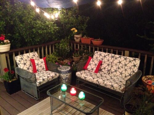 I told you I would share a photo of the patio cushions in their new location. My son in law is very happy with the look of his back deck now. You can just see it at the top of the photo—he has put up a triangular shaped blue canvas cover over the deck, which […]