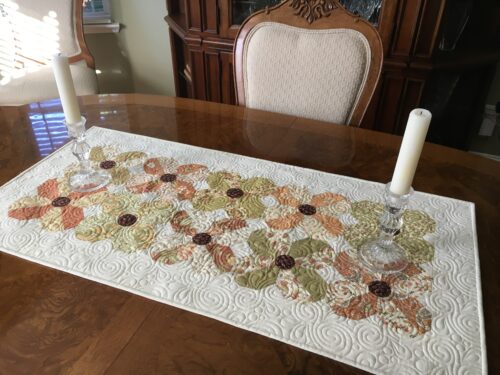The binding is going well. I've been sitting on the porch with an audio book and stitching for awhile every day. This Fig Tree runner looks so pretty on my dining table. I love the toned down colors for summer. The colors in this one definitely are not toned down, but it is so darn […]