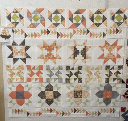 Like I said, baby steps. I only snagged an hour or so to sew yesterday, but I got two of the big corner pieces made. They are just pinned on the design wall, but I think you get the idea of where I am headed with this. I really like how the star points pick […]