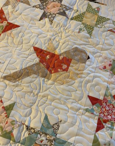 I have received some quilts back from my quilter this week and look forward to sharing them with you. This one was made with Fig Tree fabrics and features a Pattern Basket Bird Block in the center of the runner. I love the springy feel of the fabrics and love the quilting design my quilter […]