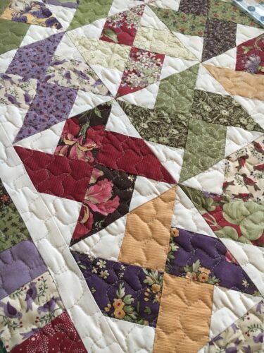 I've been working on a couple of springy table runners this past week. I shared Tootsie Pops with you, which is super cute, but I wanted another runner that showed off more of that beautiful Lilac Hill fabric I had been hoarding. An old Schnibbles pattern called State Fair came to mind, and I decided […]