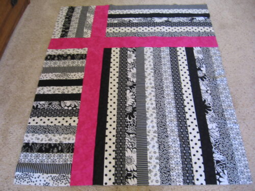 I can't even tell you how fast this went together! I started it around 9:30 and it was to this point by noon! Whew. Aren't those black and white prints adorable? The next step is the applique flower that goes right where the "ribbons" come together. I may not get to that for a couple […]