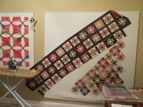 After tossing and turning half the night having nightmares about my crooked lattice, I got up at the crack of dawn and just fixed it. Whew. That's better. This Antique Stars quilt is ginormous. You can see the middle three rows across my 72 inch wide design wall, and they don't fit at all. I […]
