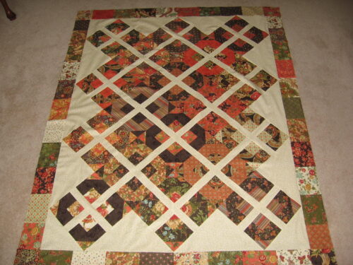 I decided on a diagonal set for my OP Sew Along quilt. There was just *barely* enough of the light fabric left for the setting triangles. I really squeaked by on this one! The results please me very much. It is plenty orange all right, but not in too much of an "in your face" […]