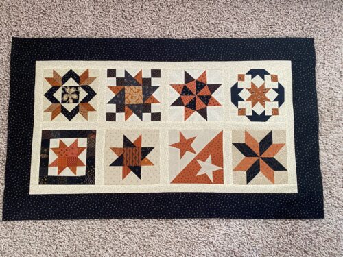 I made some extra blocks when I was doing the Moda Blockheads sew along and put them into a table runner to give to my son Ahren. He has an orange couch in his kitchen/family room, and this will go perfectly. I am sending it off to a new-to-me quilter who says he is all […]