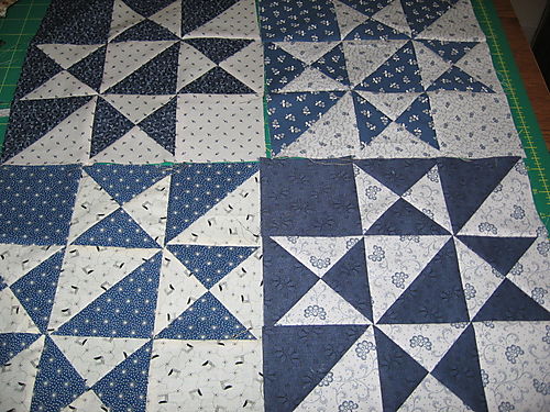 Oh Patti, what have you done? I can't stop thinking about your red and white Two Color Quilt. I couldn't copy you exactly, but I fiddled around in my stash and found a ton of blue and white Civil War reproduction fabrics. I know I wasn't going to start any new projects but…….