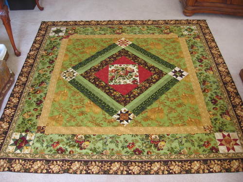 I am happy to say that I have made some major progress with the blended quilt challenge. The large toile triangles have been attached, and so has the gold border with four patch corner squares. The thing about medallion quits is that the final reveal is not going to be much of a surprise, since […]