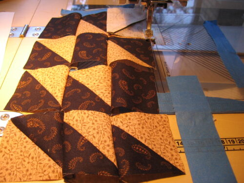 I have a little trick I'll share with you that makes sewing quilt blocks together easier for me (especially blocks that have a lot of units). I start constructing the block by sewing the first two squares together for each row. I do not clip my threads so the rows stay connected. I then […]